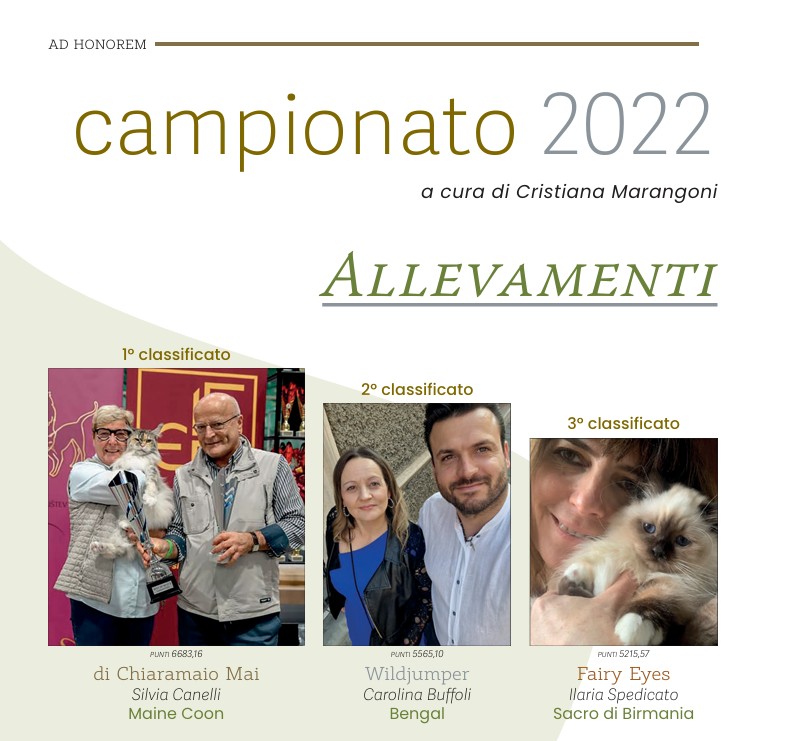 Alcuni dei riconoscimenti ottenuti alle mostre internazionali FIFE del 2021/2022.